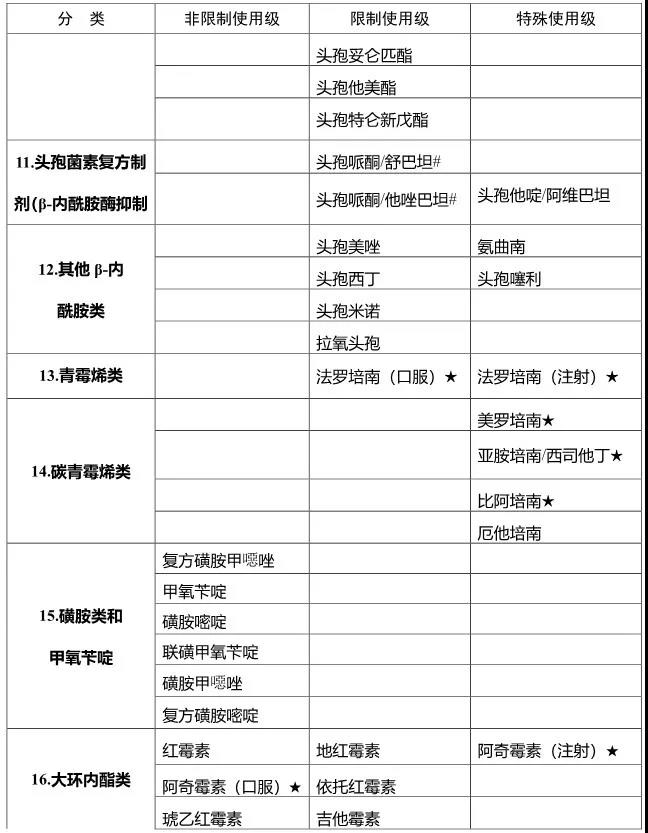 以下附四川省抗菌药物临床应用分级管理目录(2019版)