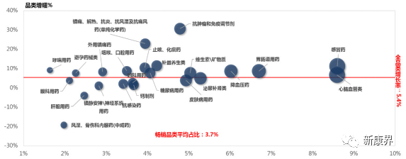 基于前期各个品种在零售药店的销售情况,零售药店应该重视在品种的创新,把更多目光放在增速更快的品种上来。