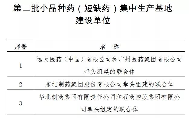 据了解,今年1月底,国家工信部、卫健委、发改委、药监局四部门正式发布了第一批小品种药(短缺药)集中生产基地建设单位名单,明确上海医药、中国医药、成都倍特分别牵头组建联合体建设小品种药(短缺药)集中生产基地。