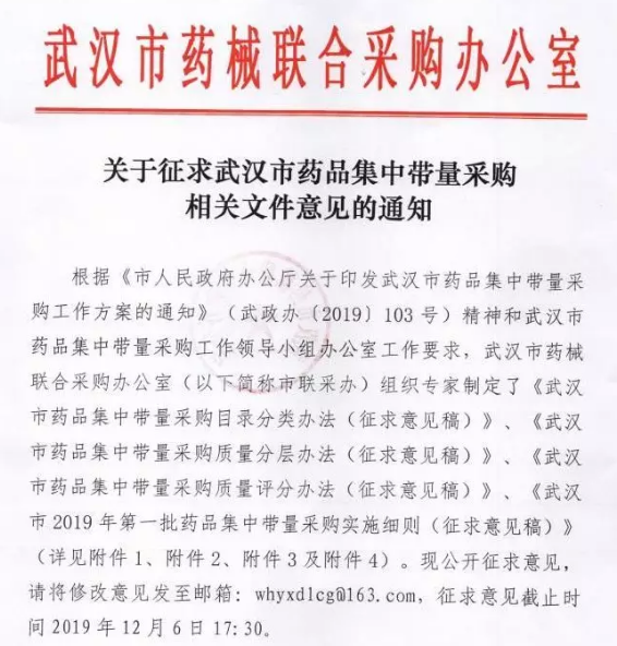 武汉市曾在《武汉市药品集中带量采购工作方案》中明确,将探索完善药品集中采购机制和以市场为主导的药品价格形成机制,为全国医保统筹区实施药品集中带量采购提供可复制推广经验。