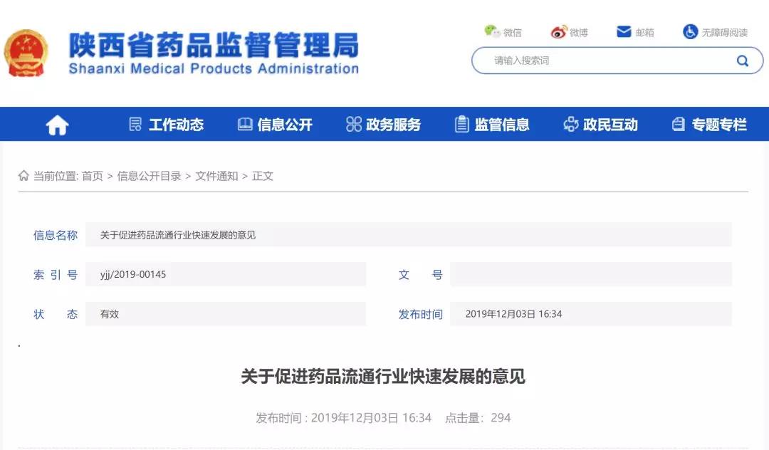 12月3日,陕西省药监局发布了《关于促进药品流通行业快速发展的意见》(以下简称《意见》),并就促进药品流通行业快速发展提出了9项措施。