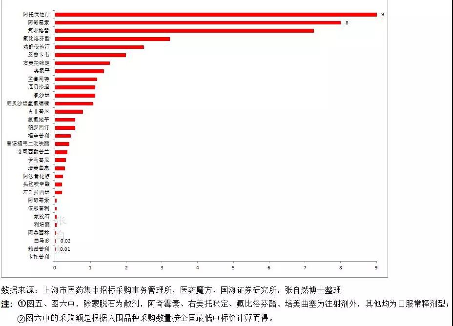 4+7带量采购品种,几乎全为慢病用药品种。绝大多数品种市场规模较大。