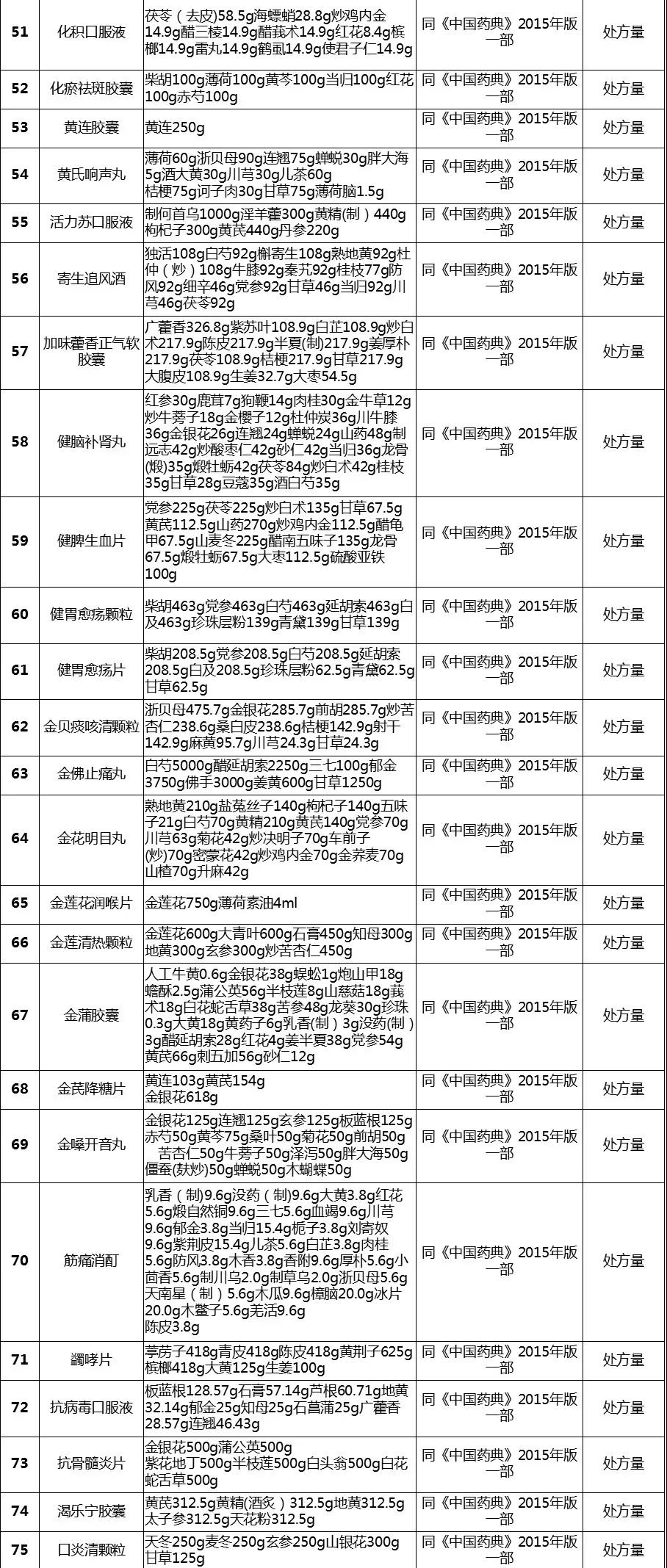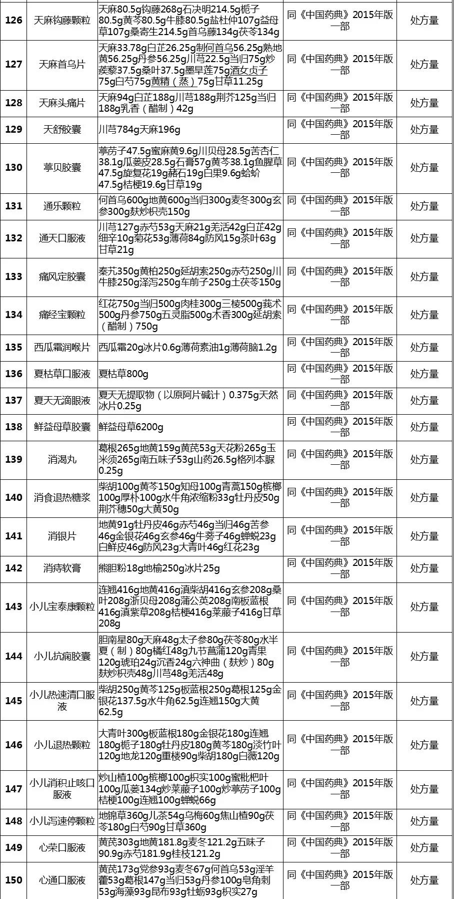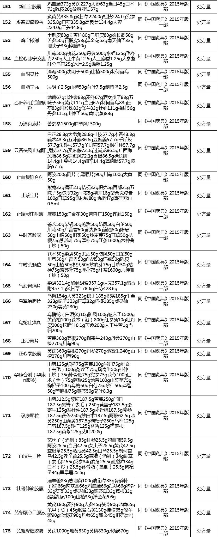 经梳理,该表共涉及255个中成药品种,除5个品种在2020版《中国药典》修订时已单独进行公示、2015年版《中国药典》【制法】中已包含处方量或不需要补充处方量外,其余250个品种均有新公开的处方量或制法的相关信息。