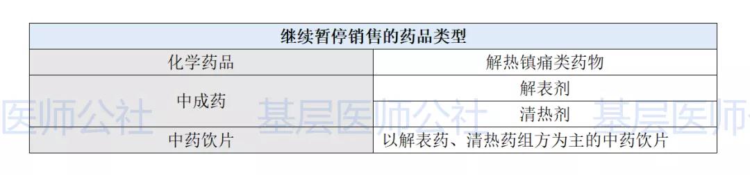 但不得处置不明原因发热、急性呼吸道症状类患者。所有零售药店和门诊部等机构可以销售、使用止咳祛痰平喘类药品,但对中药制剂在内的解热镇痛类药品继续暂停销售,实施封存管理。