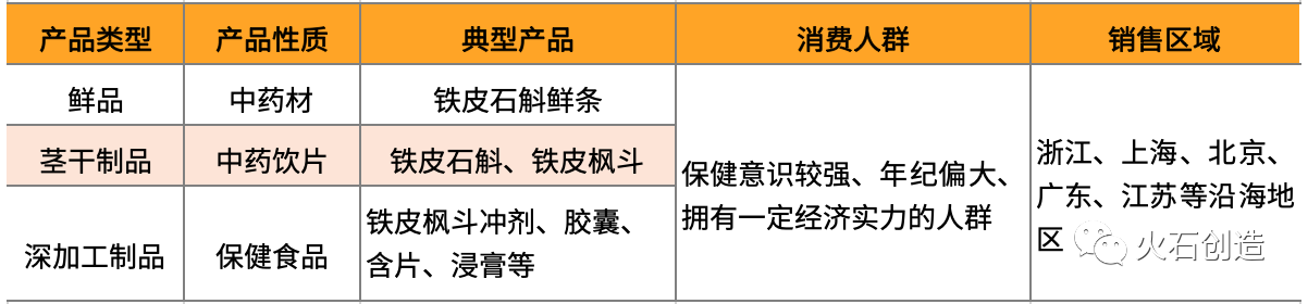表1 铁皮石斛产品类型