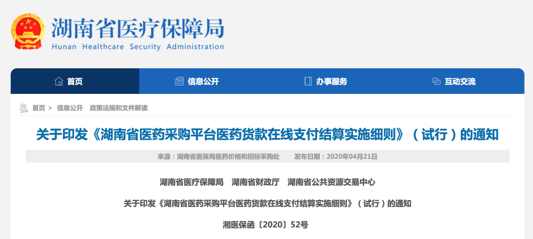 湖南省此次要求实行货款在线支付结算的包括国家和湖南省带量采购的中选药品(网上采购的其它药品也鼓励实行),由于这次的细则自发布之日(4月17日)起试行,因此对2019年12月25日后网上下达的带量采购订单且尚未完成结算的,要求通过在线进行药品集中采购货款支付结算。而对于正在进行落地准备的第二批国家带量采购中选药品和上周公布了中标结果的抗菌药物专项集中采购中标药品,则要求从挂网执行日起即通过在线进行相关药品集中采购货款支付结算。